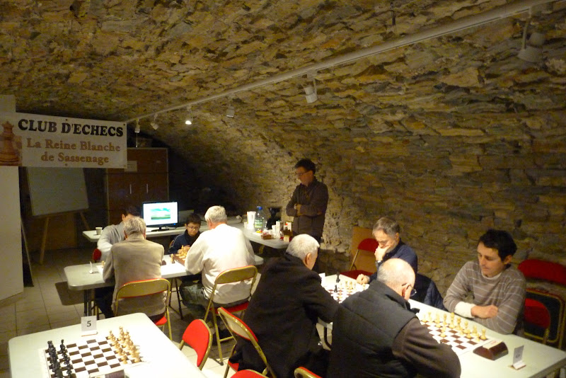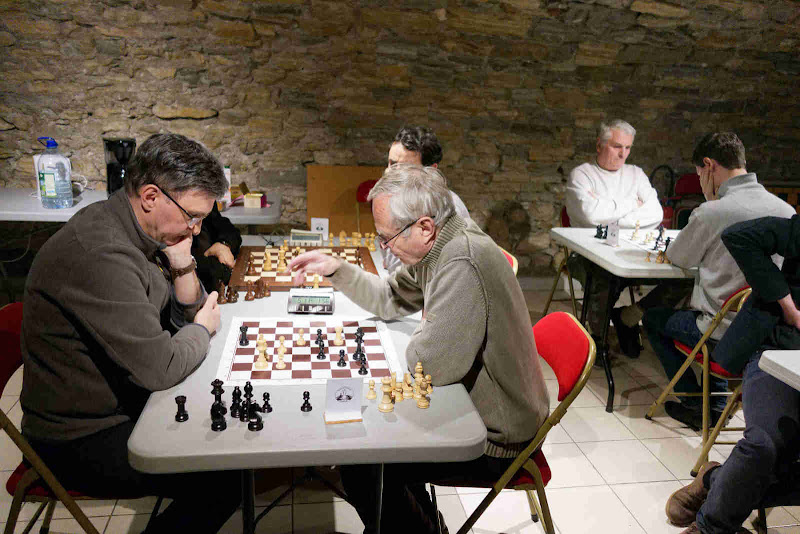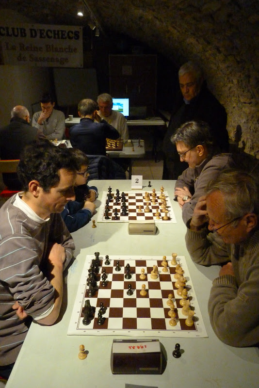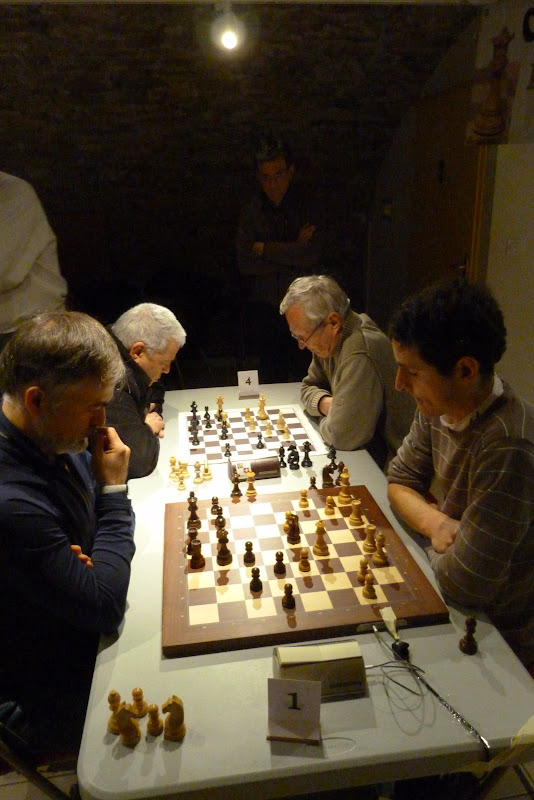 Gérard - Fabrice. Les blancs cèdent l’initiative dans l’ouverture, la récupèrent au milieu et obtiennent un avantage gagnant de deux pièces, malgré le pion passé des noirs. Mais, au moment critique du jeu, les liens entre les pièces blanches se rompent: